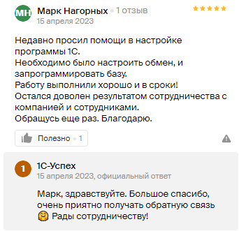 Обращаясь к команде 1С-Успех, вы можете: