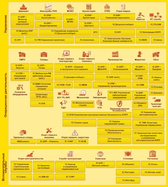 «1С: ERP Управление предприятием» — инновационное решение для построения комплексных информационных систем управления деятельностью многопрофильных предприятий с учетом лучших мировых и отечественных практик автоматизации крупного и среднего бизнеса.